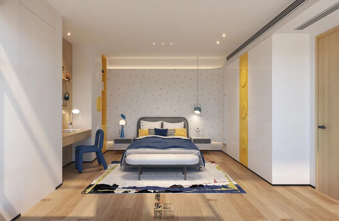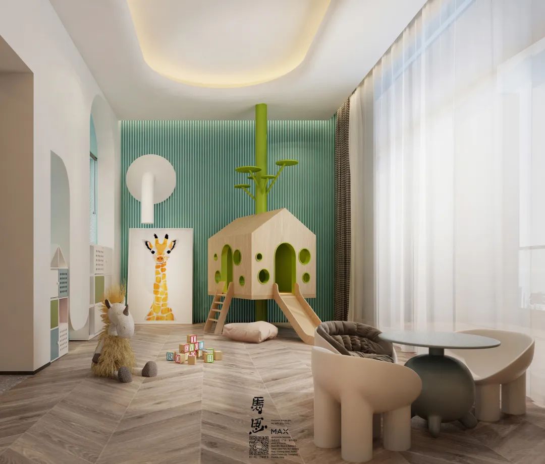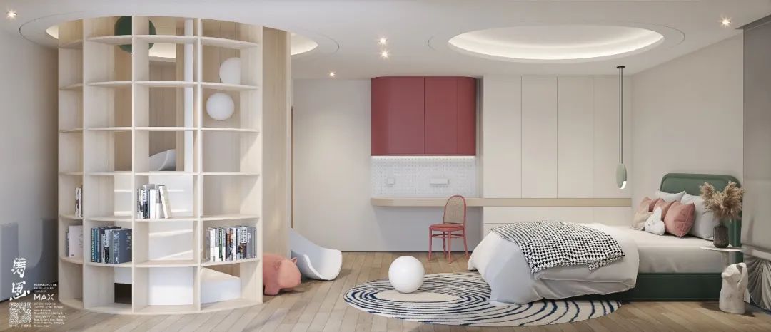 此时,孩子活动区域随着年龄的变化产生多元化的需求,比如兴趣培养区、学习阅读区、亲子互动区、安全岛...空间需要避免堆积杂乱的色块与具象的图案,应以柔和的色彩作为过渡,简化空间的元素,有助于形成孩子集中的专注力,同时有利于规范与养成良好的性格与行为习惯。